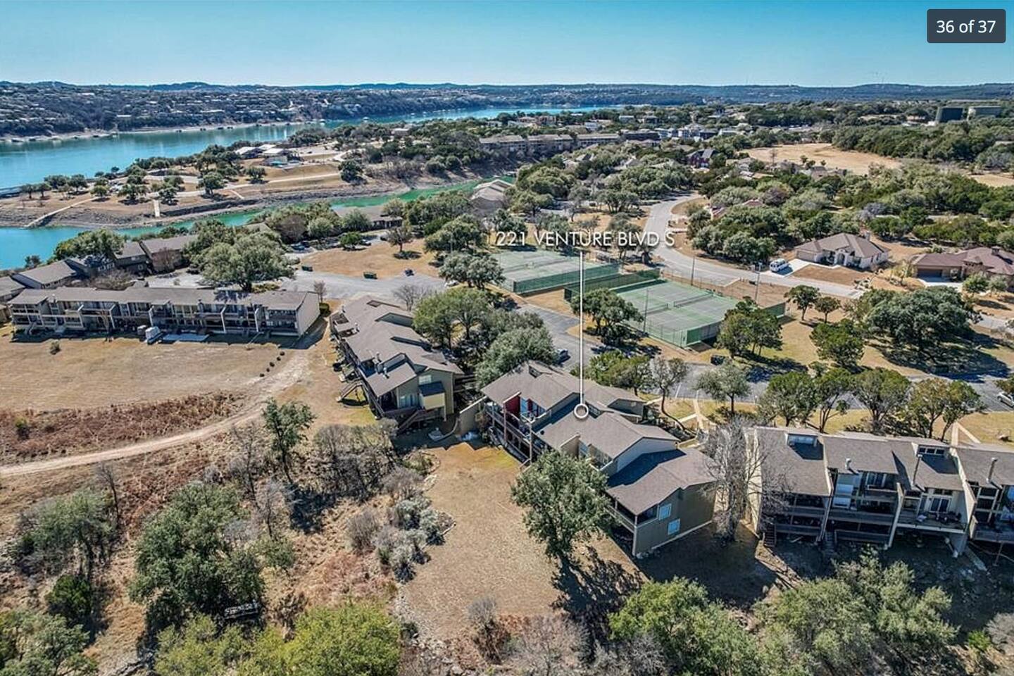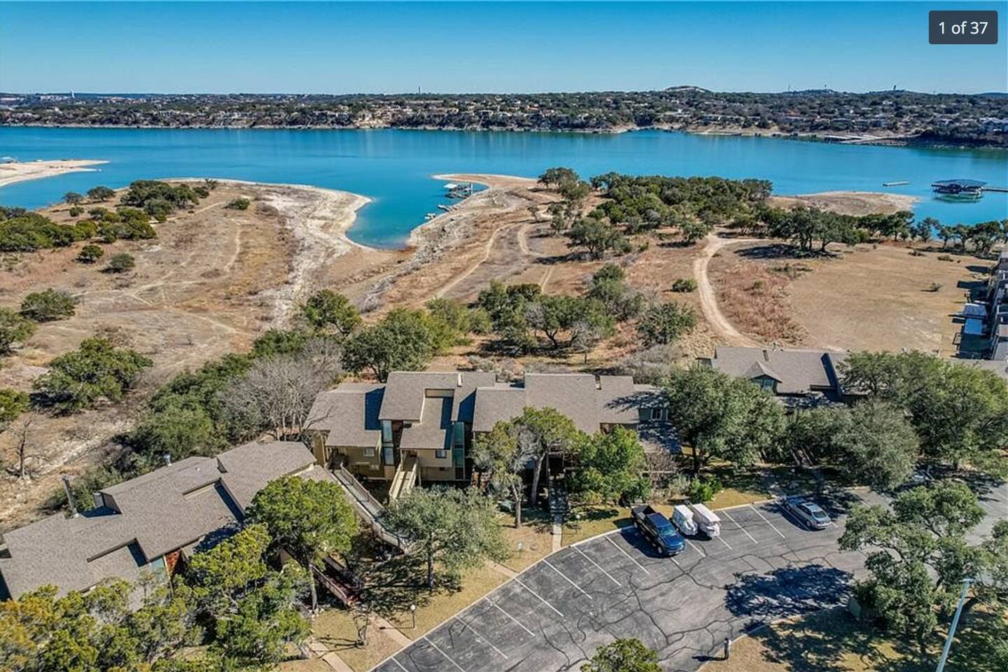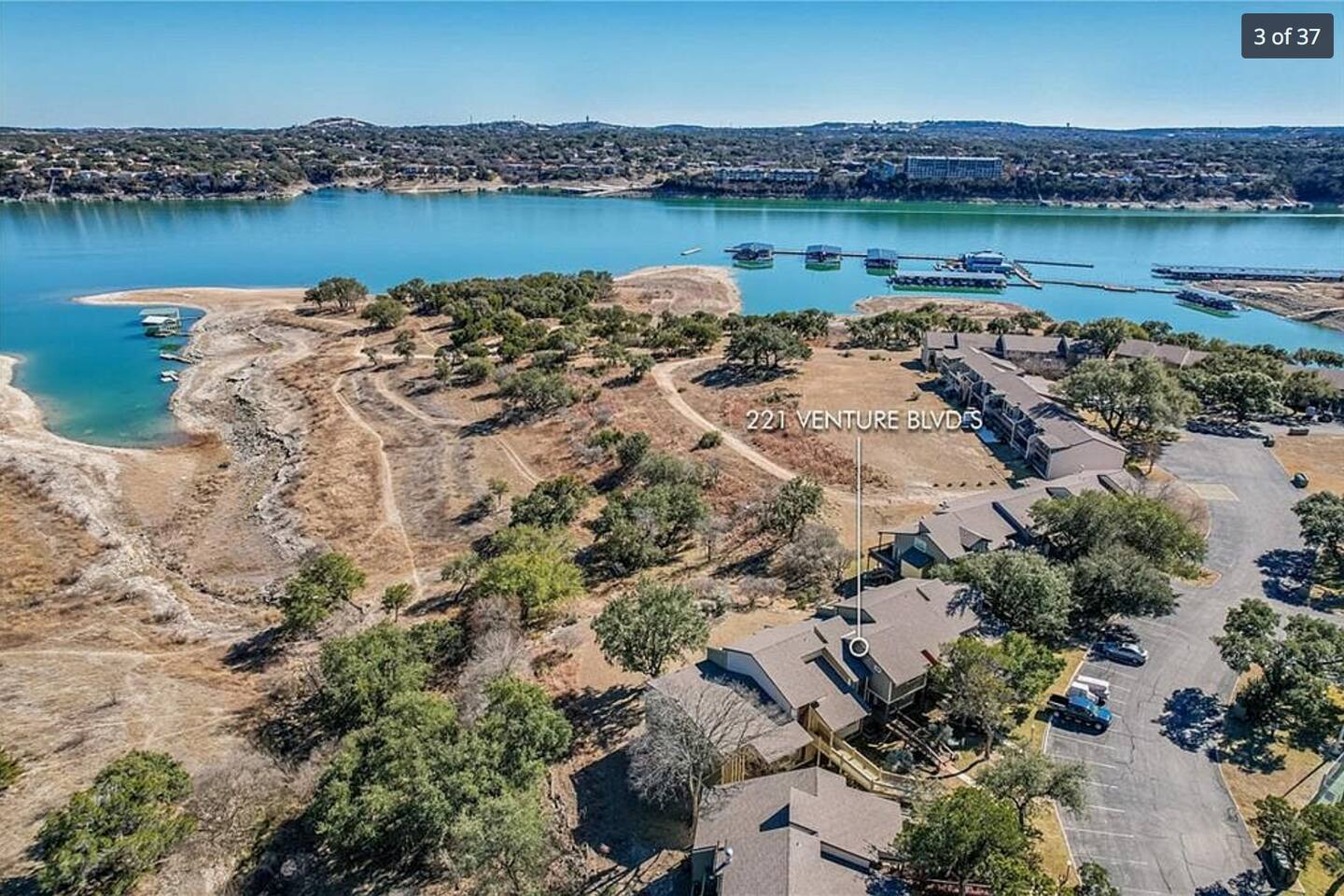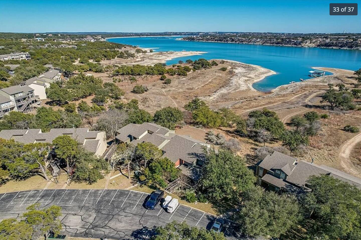 Take in views of Lake Travis from 2 decks in this 3 level 4 bed/3bath townhouse with lots of extras. Explore the 50 acre private lake park with beach, floating restaurant ++++