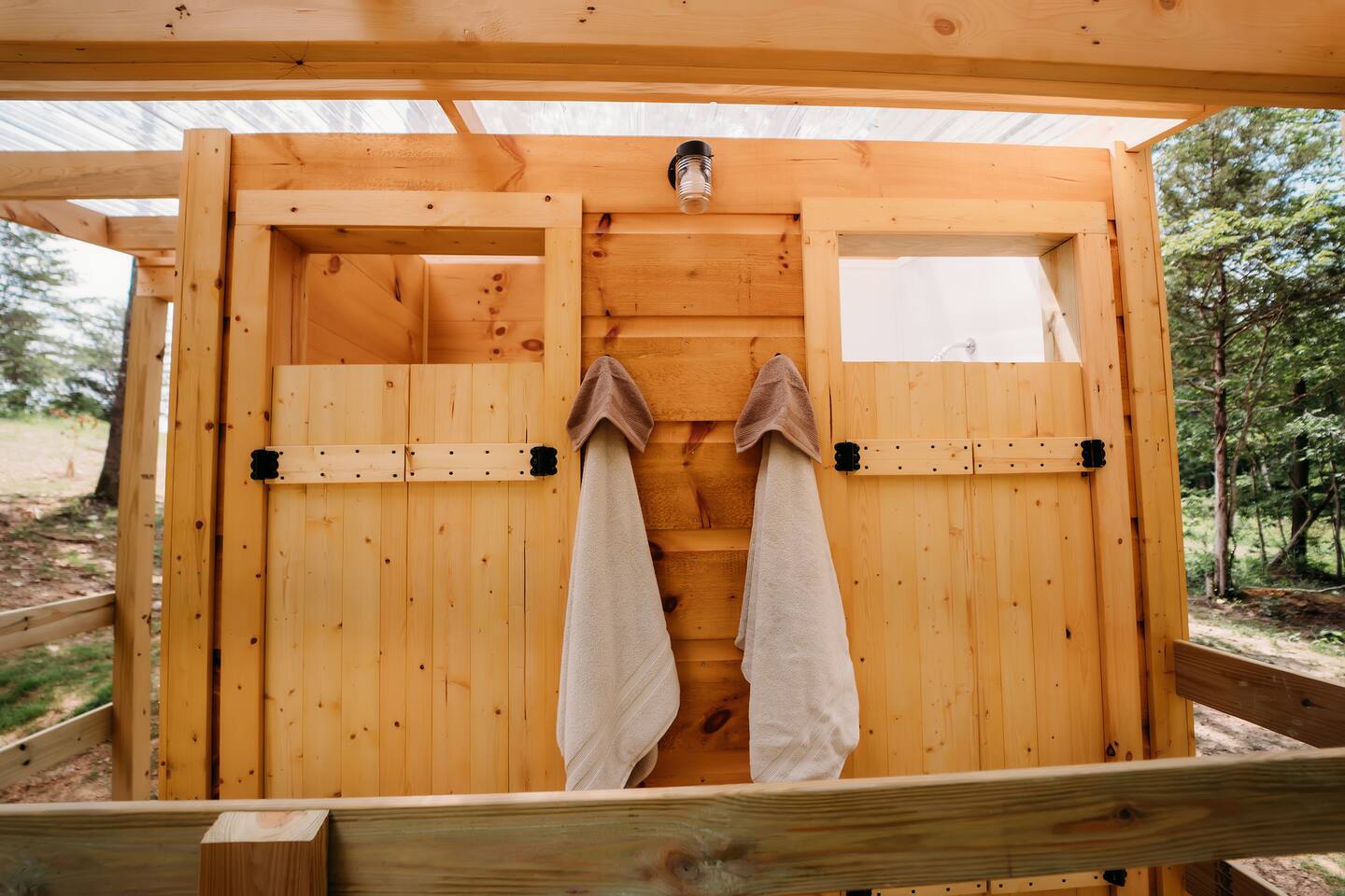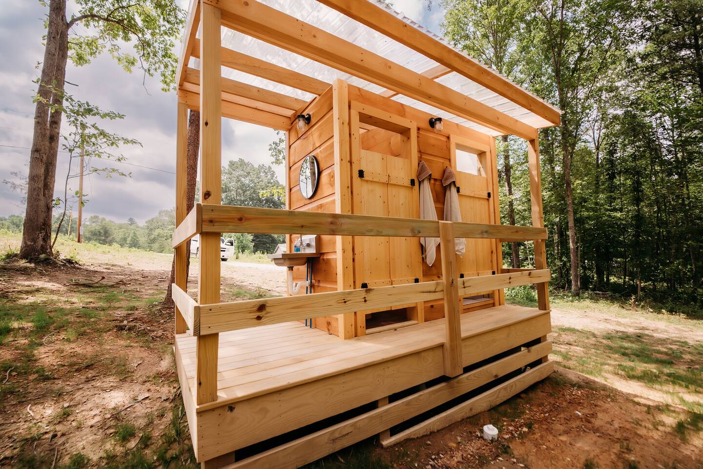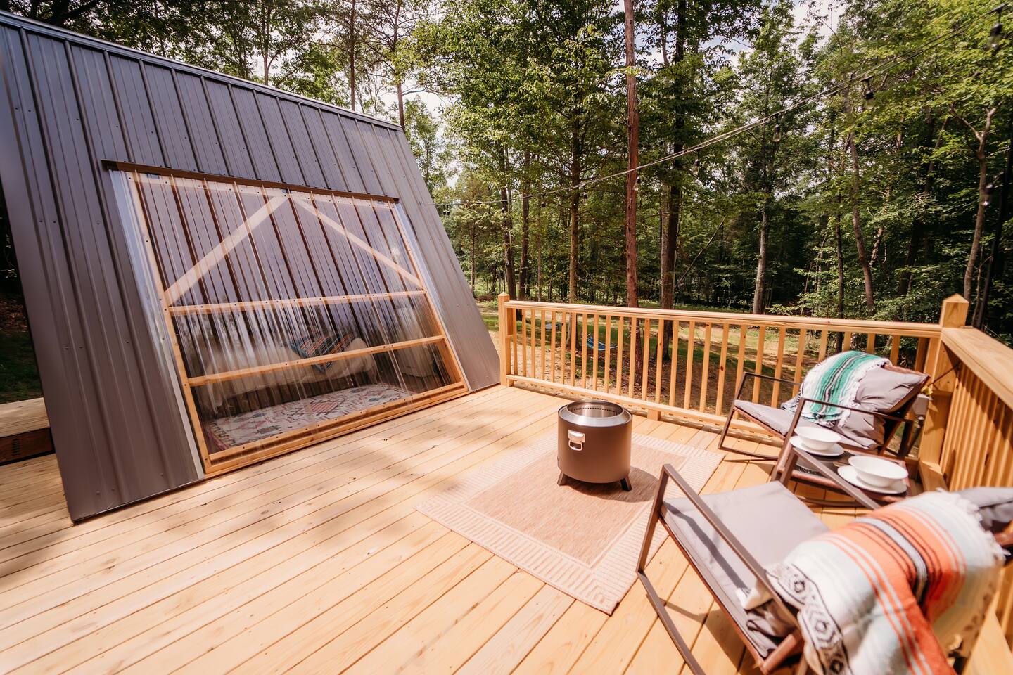 Black Creek Glamping is just minutes walk from Big South Fork National River and Recreation. The property also boasts private access trails to Black Creek. You can ride ATVs directly to the trails from the driveway. This is a glamp site with an A Frame and a detached full bathroom unit. Enjoy the luxuries of home with a hot shower, facilities and a cozy bed while camping and embracing nature. With a beautiful scenic view of the wooded area, you can enjoy a night on the patio with a fire pit, some yard games, the possibilities are endless.