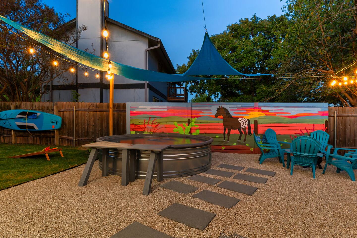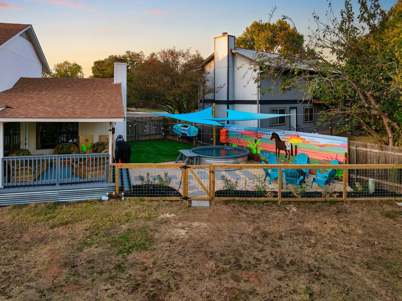 Professional Photos Coming Soon! Welcome to Spotted Horse, your gateway to Austin. Near domain with access to the Quarry Lake, a pool, arcade and retrofitted garage saloon, this is your next vacation destination for your family or group trip. Fishing, paddle boarding, and a great time with outdoor games and a fire pit, you’ll enjoy the night on the deck with some s’mores And playing some pool in the saloon. Close to the domain, central downtown Austin is a short drive. Close to everything!nl