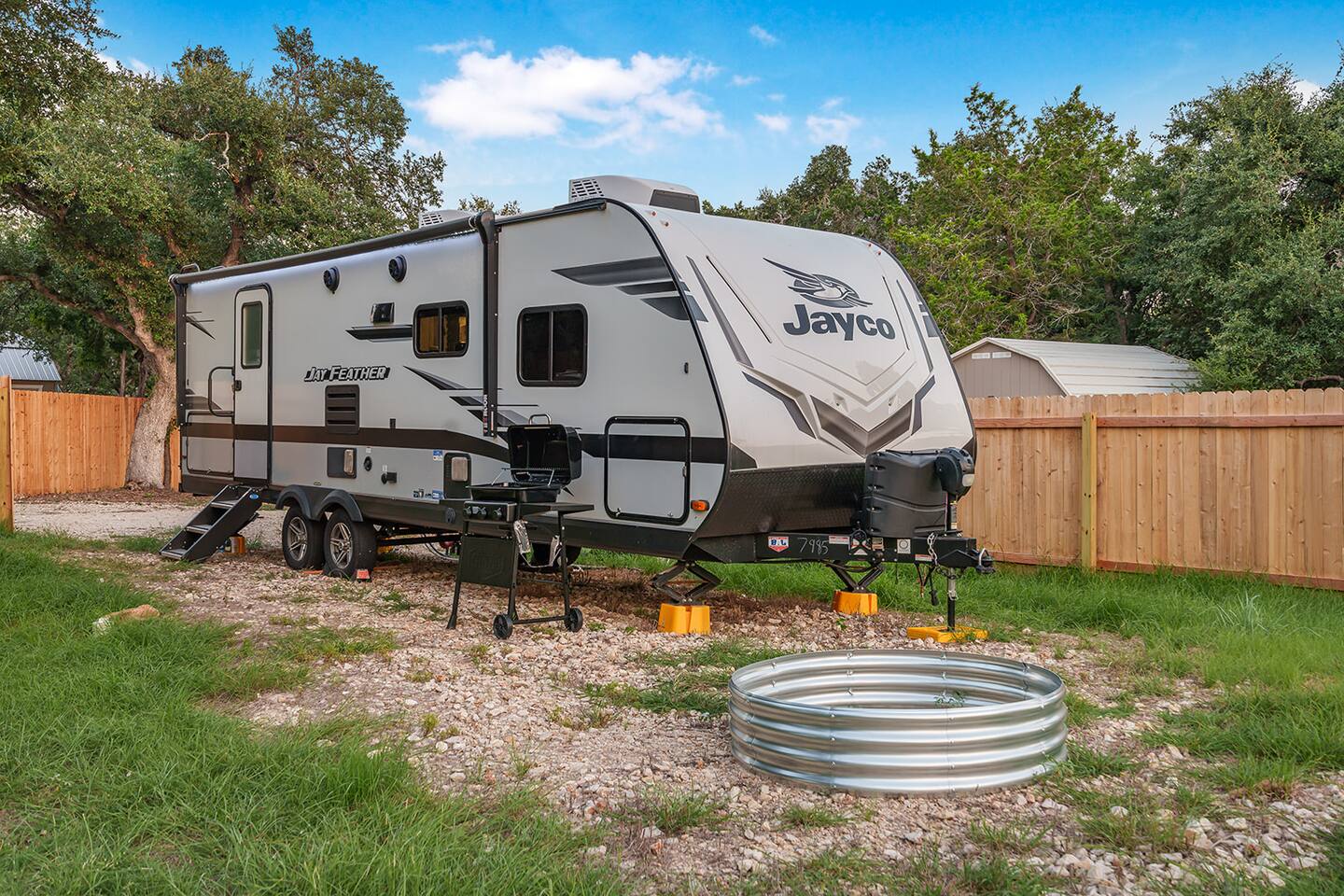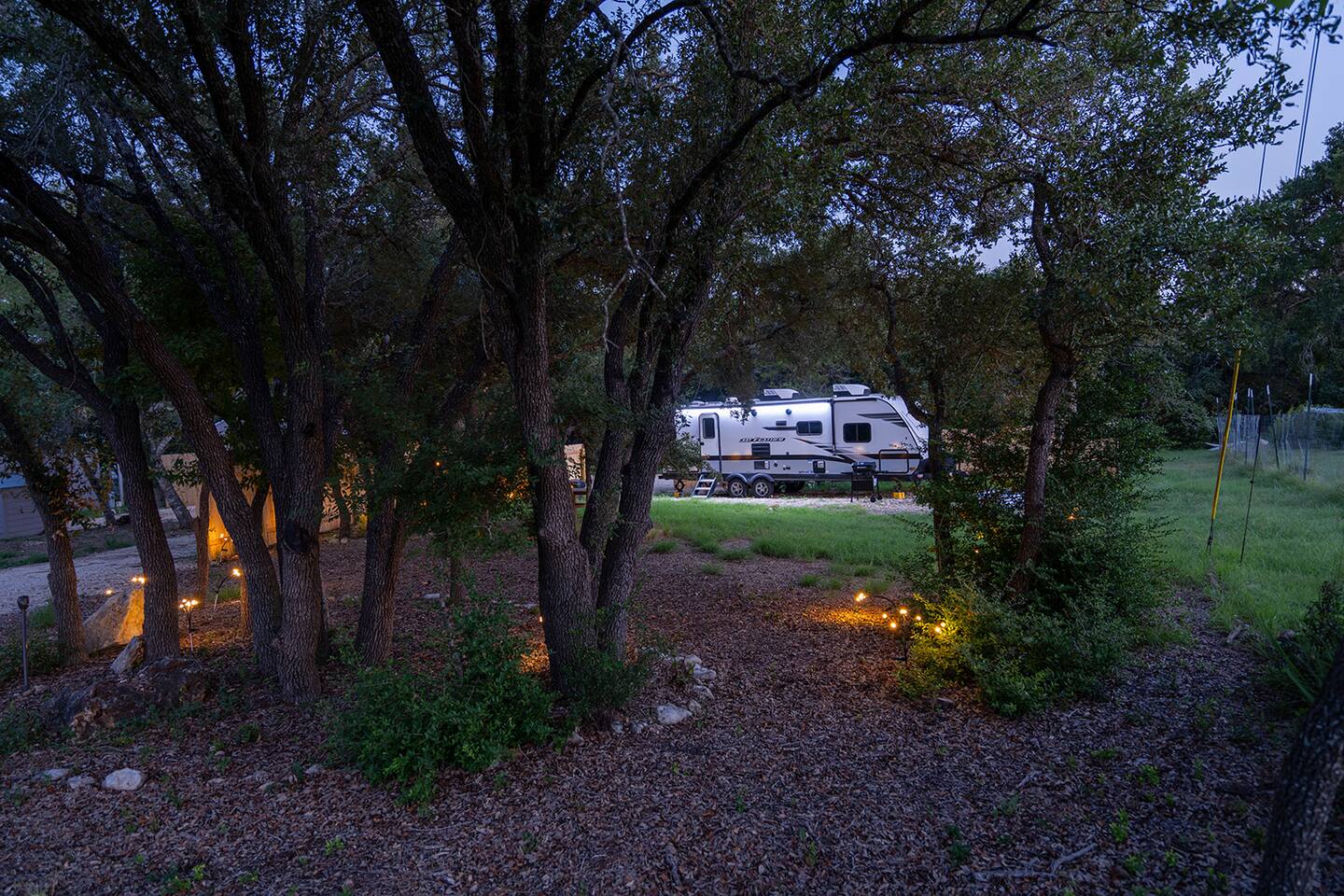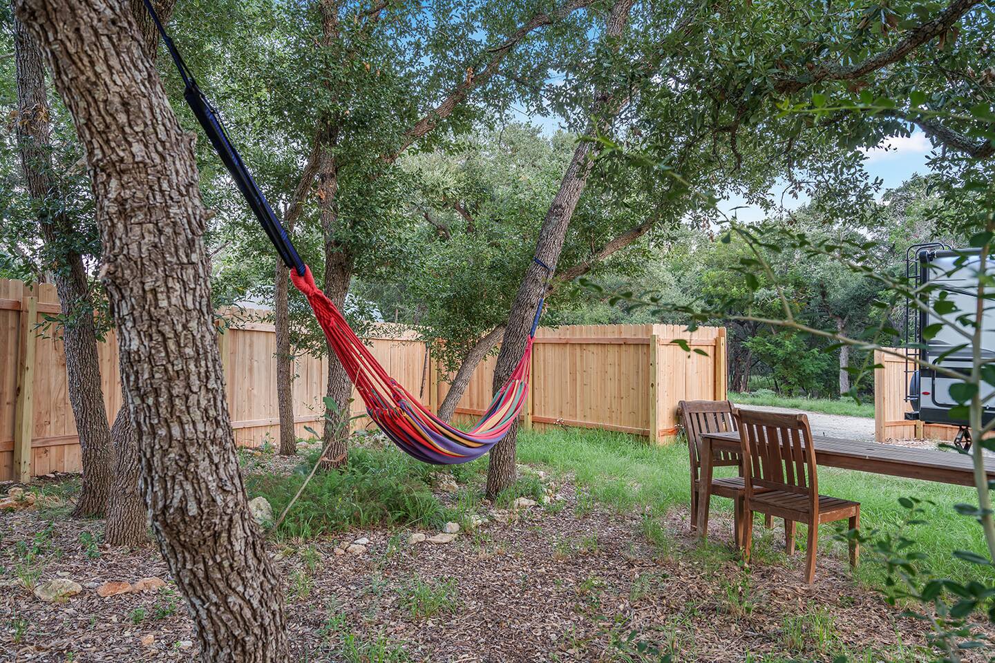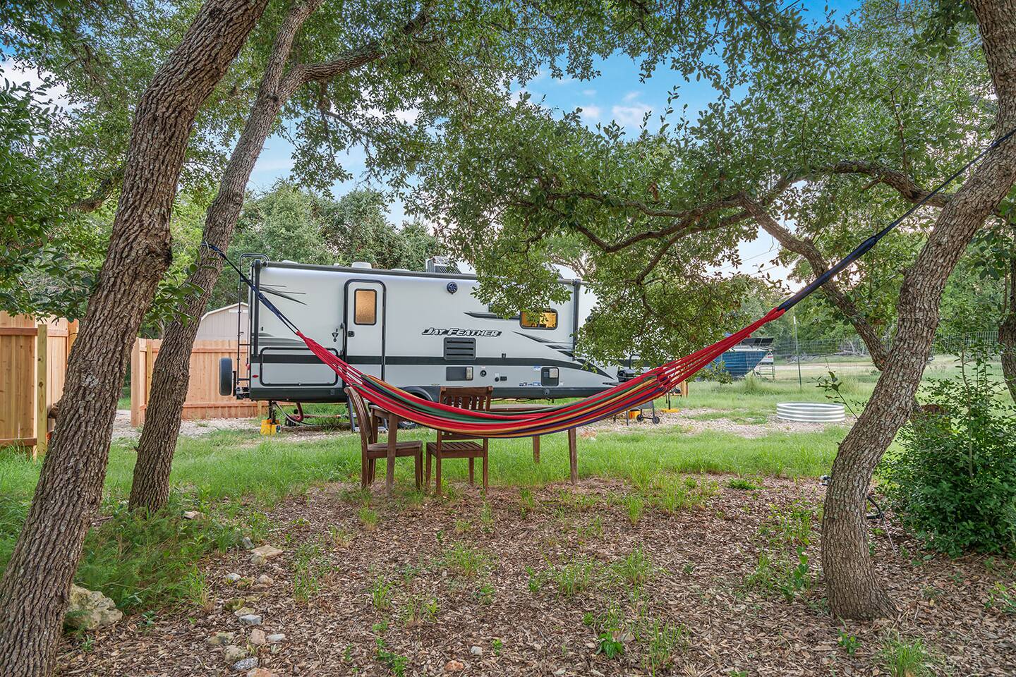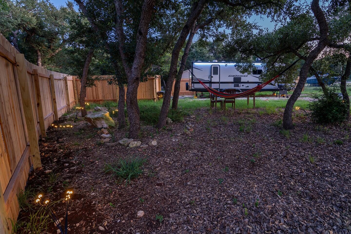 Welcome to our RV Hideout in the Texas Hill Country. The Rolling Oaks area provides a full luxury glamping experience complete with 3.5 acres of wooded country with wildlife, garden, hammock and fire pit, with pet friendly and romantic vibes, this is a perfect fully equipped RV for a night away from the city. Enjoy the serenity of nature w/ all the comforts of home. Also located on this 3.5 acres are other accommodations spaced to maximize privacy (A Tiny Home, and a 1 bed/1 bath Bungalow).
