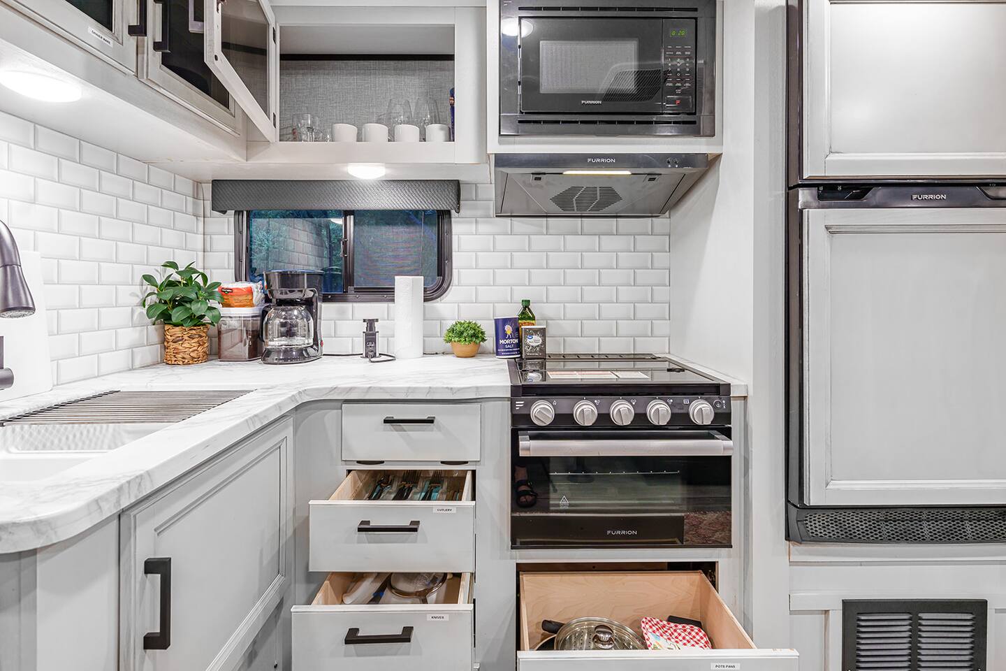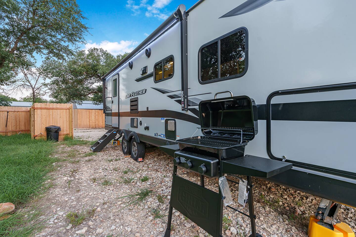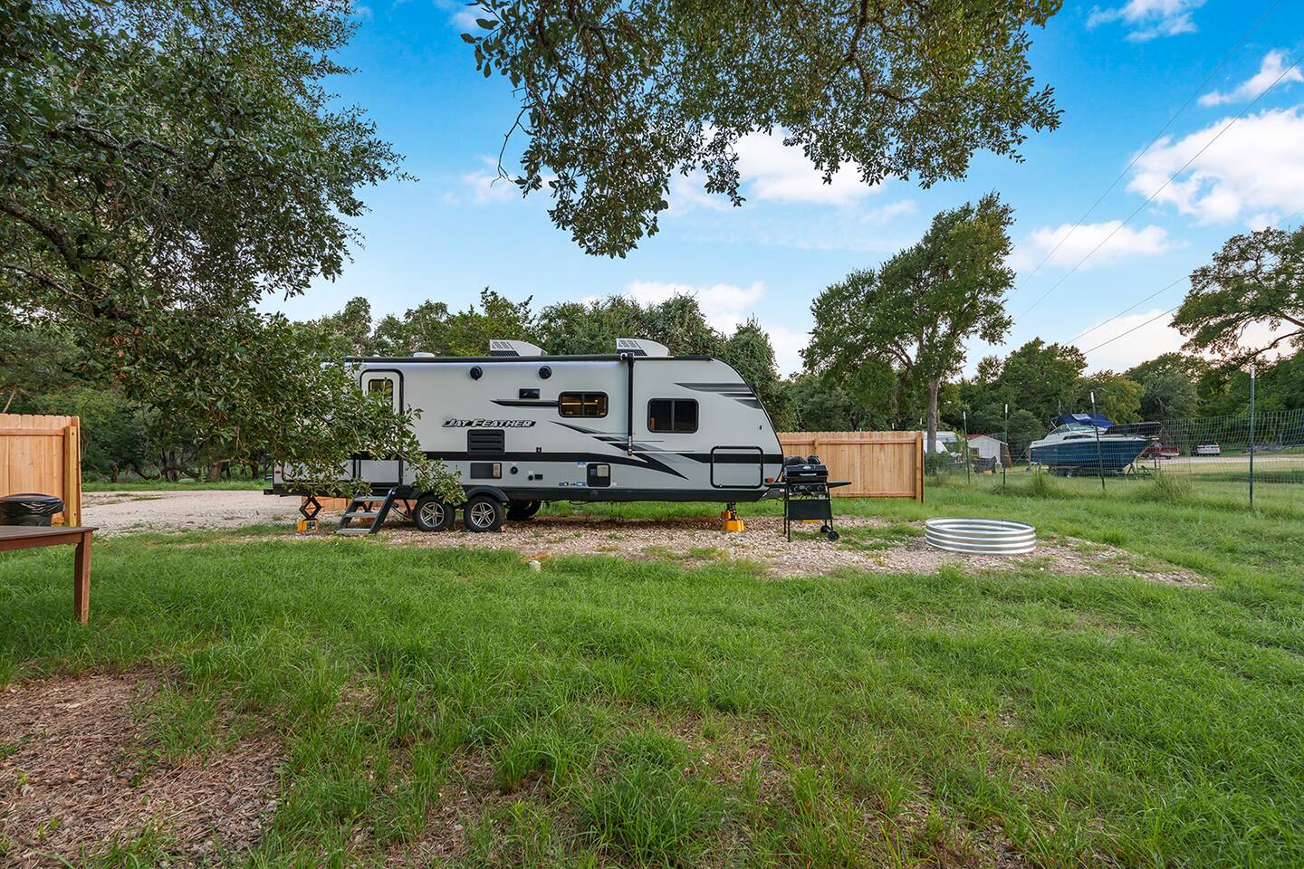 This RV space is nestled on 3.5 acres in a DARK SKY community. This means no light pollution. You will enjoy beautiful starlit nights with an incredible view of the stars through our powerful telescope. This property is next to a community garden for you nature lovers. It is untended, allowing the sprawling wild to absorb you and connect you with nature. Deer and other wildlife are common here, be careful on the roads. You will see deer nearly every day. The property is tucked away into a quiet neighborhood with dead end roads-meaning you will hear little to no road noise from the space. The Luxury RV is fully equipped with a gas range, gas grill, outdoor table, fully equipped kitchen with coffee maker, toaster, microwave, freezer, fridge, 2 TVs (one in each room) and a bathroom. We have mood lighting installed so you can control the setting of your experience. The RV comes equipped with Roku devices and WiFi, allowing you to connect to your favorite streaming apps (just make sure to log out when you're done!) a retro video game console with over 3000+ titles, an AM/FM radio, and boards games to satisfy the indoorsy people. Are you more of an outdoors person? Enjoy the hammock and firefly lights, our fire pit, outdoor grill and table or a stroll around the property. Bringing your fur babies? No problem. You will have water and food bowls and the RV is pet friendly, please just be mindful of the space and keep them off the bed. With a queen mattress and a fold out full size sleeping arrangement, the RV can accommodate up to 4 people, although we think 3 is the most you should fit comfortably. (We're warning you ahead of time, because 4 people is possible but makes it feel cramped). The property has a fenced in dog park, other rentals (see our other listings) spaced and fenced for your privacy and theirs, and is teeming with wildlife to make your stay an enchanting and romantic visit into nature. About Driftwood (in the area) We have amazing relationships with local vendors, including Fluffy Bottom Farms Sonder Coffee Hays City Store Desert Door Distillery Duchman Winery and many more! We are less than 20 minutes from: -Wimberly -Blue Hole -Jacob's Well -Devil's Backbone -10+ Wineries, Distilleries and Breweries We are around 30 minutes from: -San Marcos River Floating -Canyon Lake We hope you enjoy our Hill Country property! Check out all our spaces, and come back again!