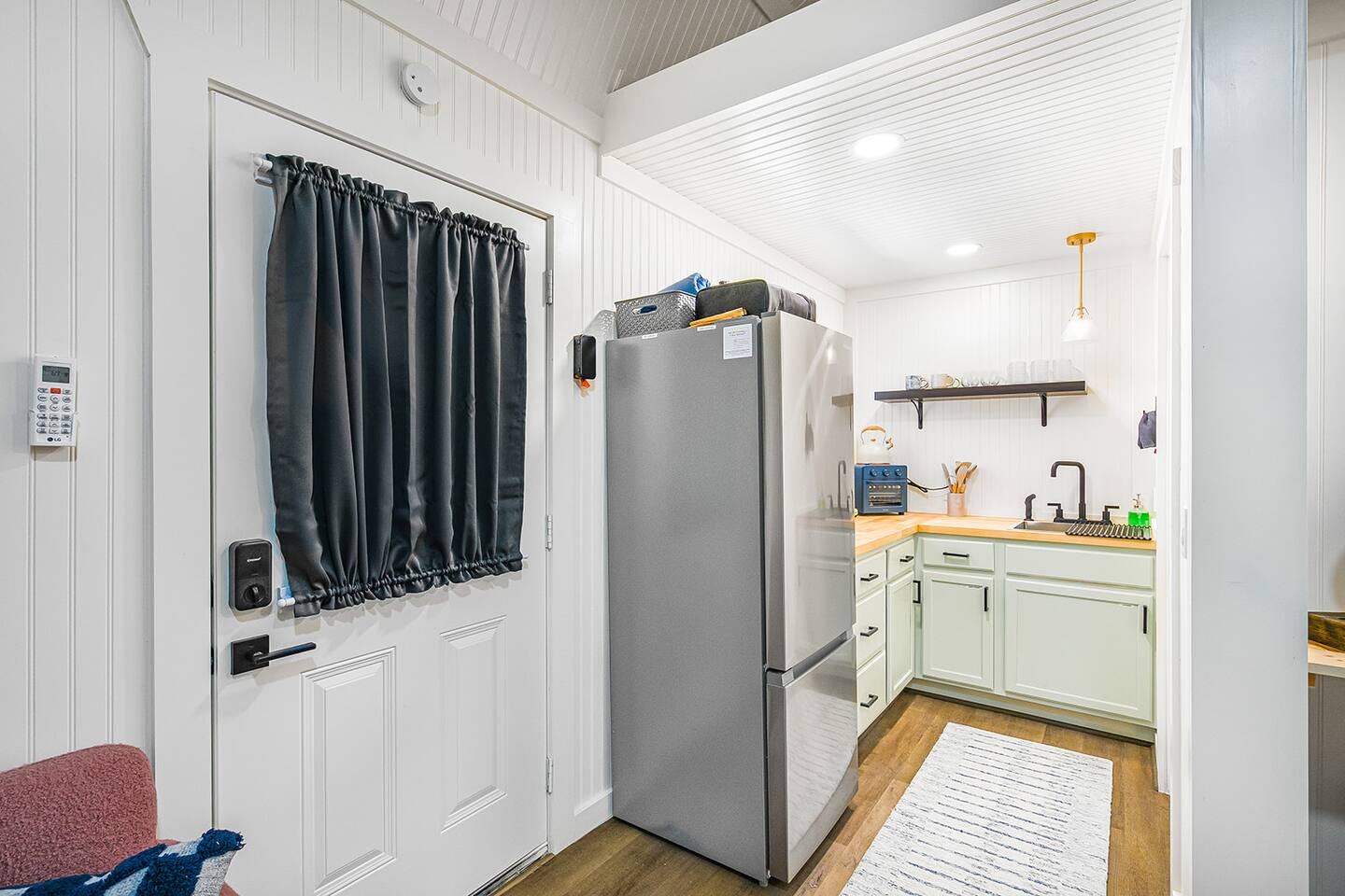 The entire privately fenced tiny home unit is yours, with the yard as well. The property has a community garden and wilderness to explore. Arriving, you will see the fencing located on the right side of the property and can park directly in front of the fence. As noted, there are two other vacation rentals on the property with their own private spaces.