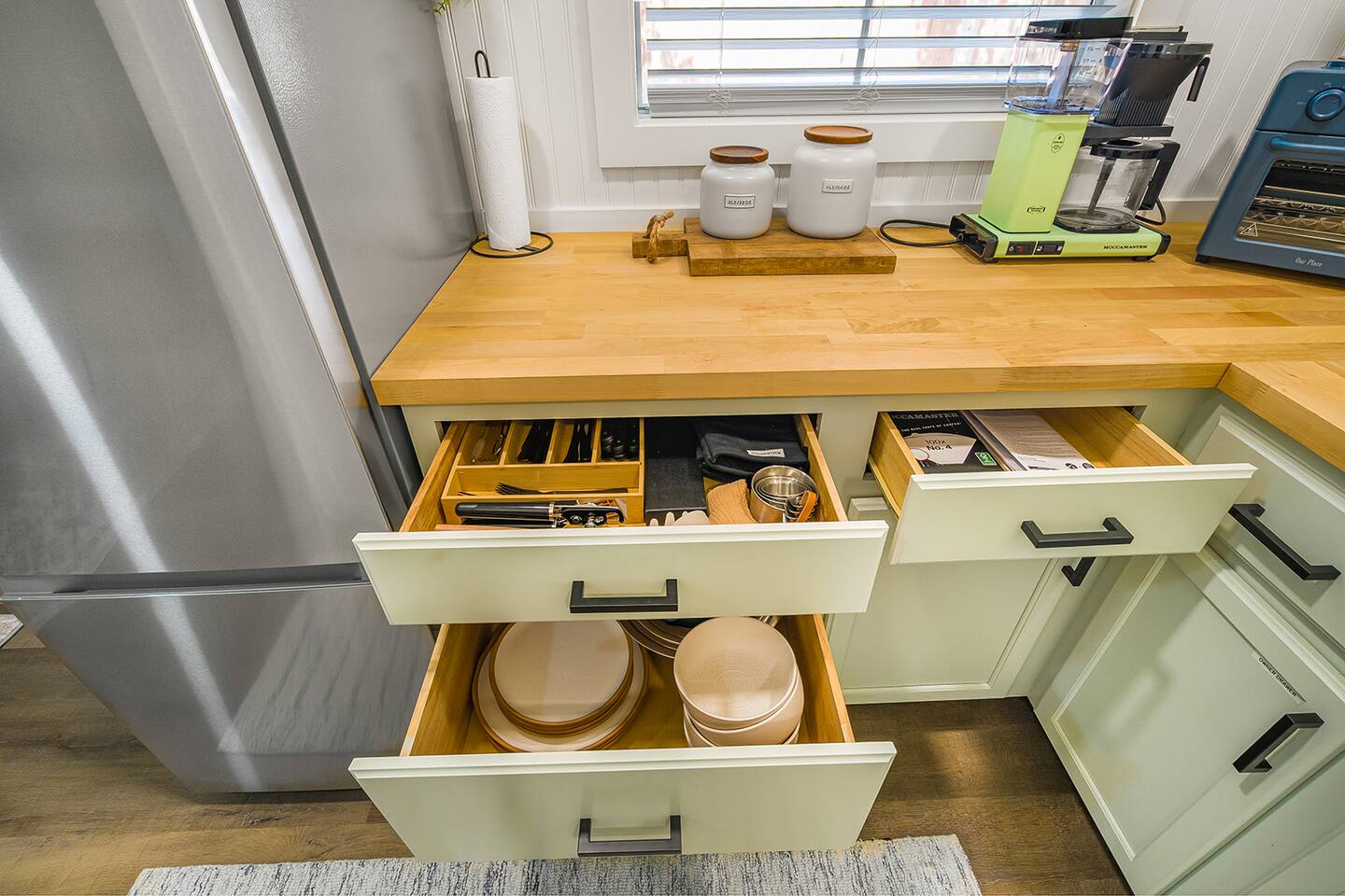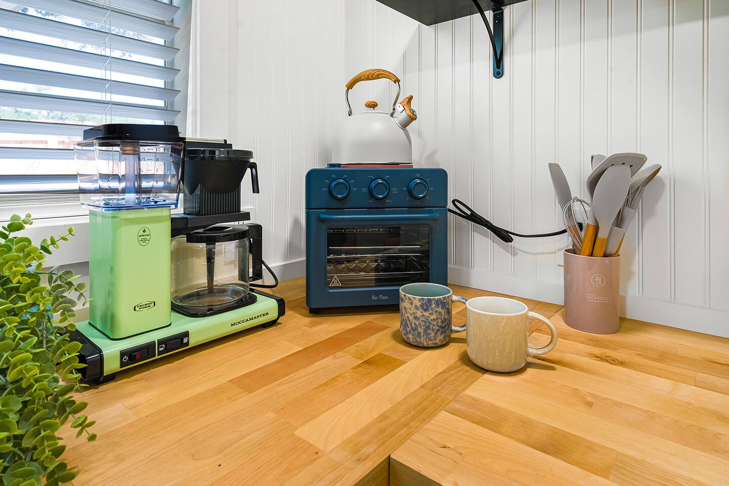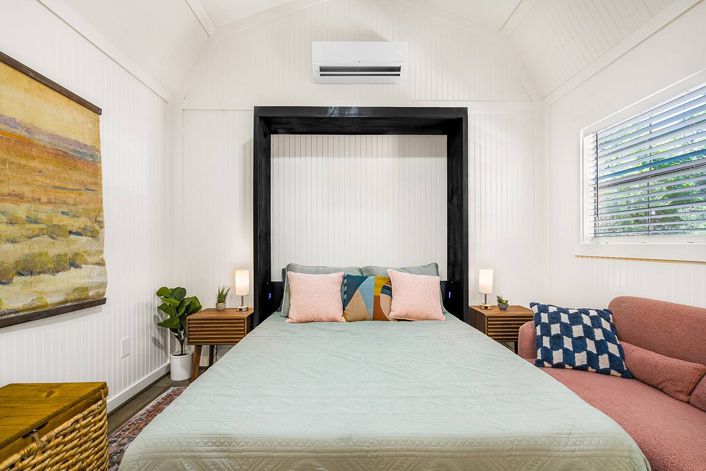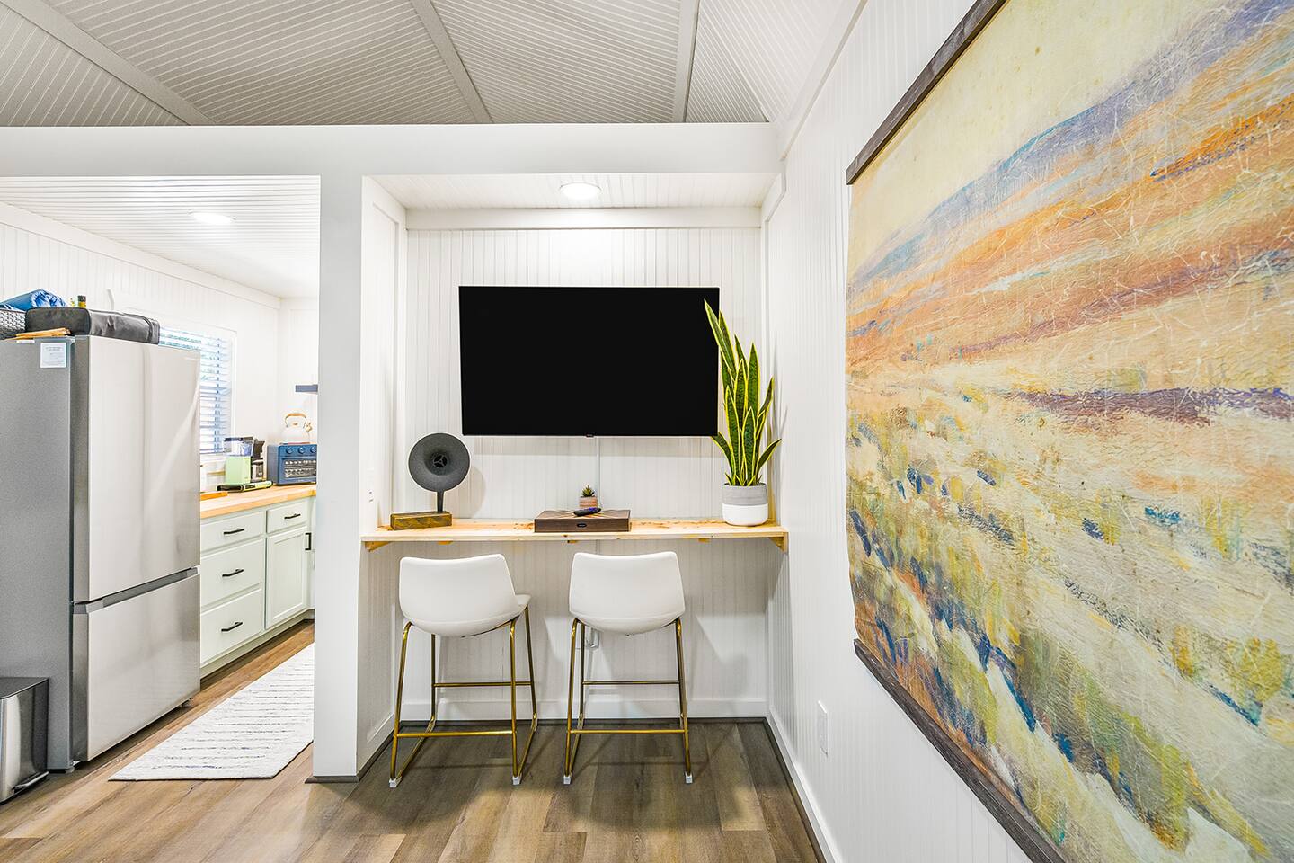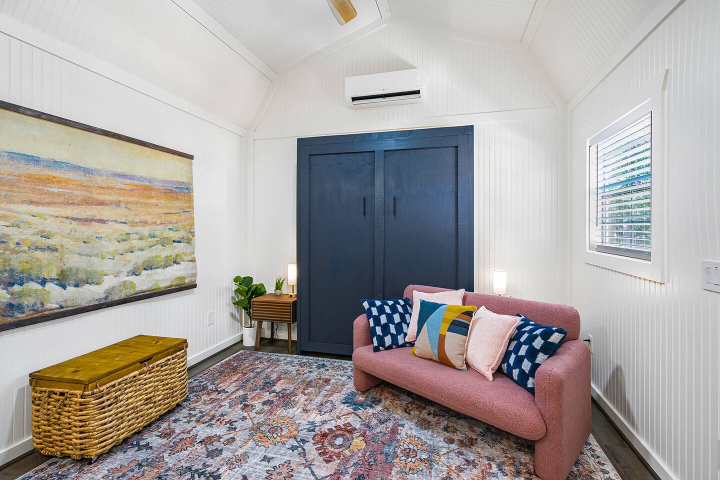 This luxurious tiny home is located in a peaceful Hill Country area in dark sky territory conveniently close to Wimberley, Dripping Springs, and all the surrounding Hill Country destinations. Come and relax with a custom built queen sized murphy bed, that folds up so you can enjoy even more space in this amenity packed tiny home. The 50" Smart TV and wifi access allows you to stream movies, shows and more before you fall asleep. Our kitchen boasts filtered water on a rainwater system, eco-friendly and delicious. We have a mini oven, induction stovetop, top of the line mocha-master coffee maker with fresh ground coffee from local shops, and all the needed kitchen accouterments for a delicious night in. Outside, we have a fire pit, and enough fenced in room for fido to run around (pet friendly), a state of the art blackstone griddle for grilling out, and nearly 3 and a half sprawling acres for you to roam. The property also includes two other unique spaces (a Cottage and Luxury RV), perfect for larger groups or additional privacy. These spaces can be rented separately or together, offering flexibility for your stay. The Cottage is the main house and faces in the opposite direction from the Tiny Home, the RV site has privacy fencing, and the Tiny Home has its own space altogether offering its own privacy if rented alone. The property also has a separate fenced in dog area, a community garden, and is teeming with wildlife to make your stay an enchanting and romantic visit into nature. Don't be surprised if you see deer or other wildlife as they are not shy in this part of the country!