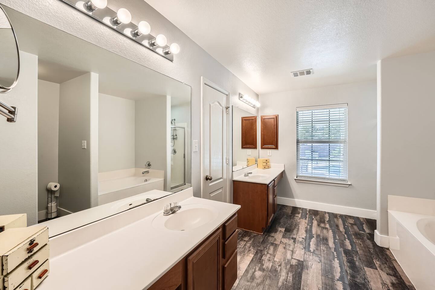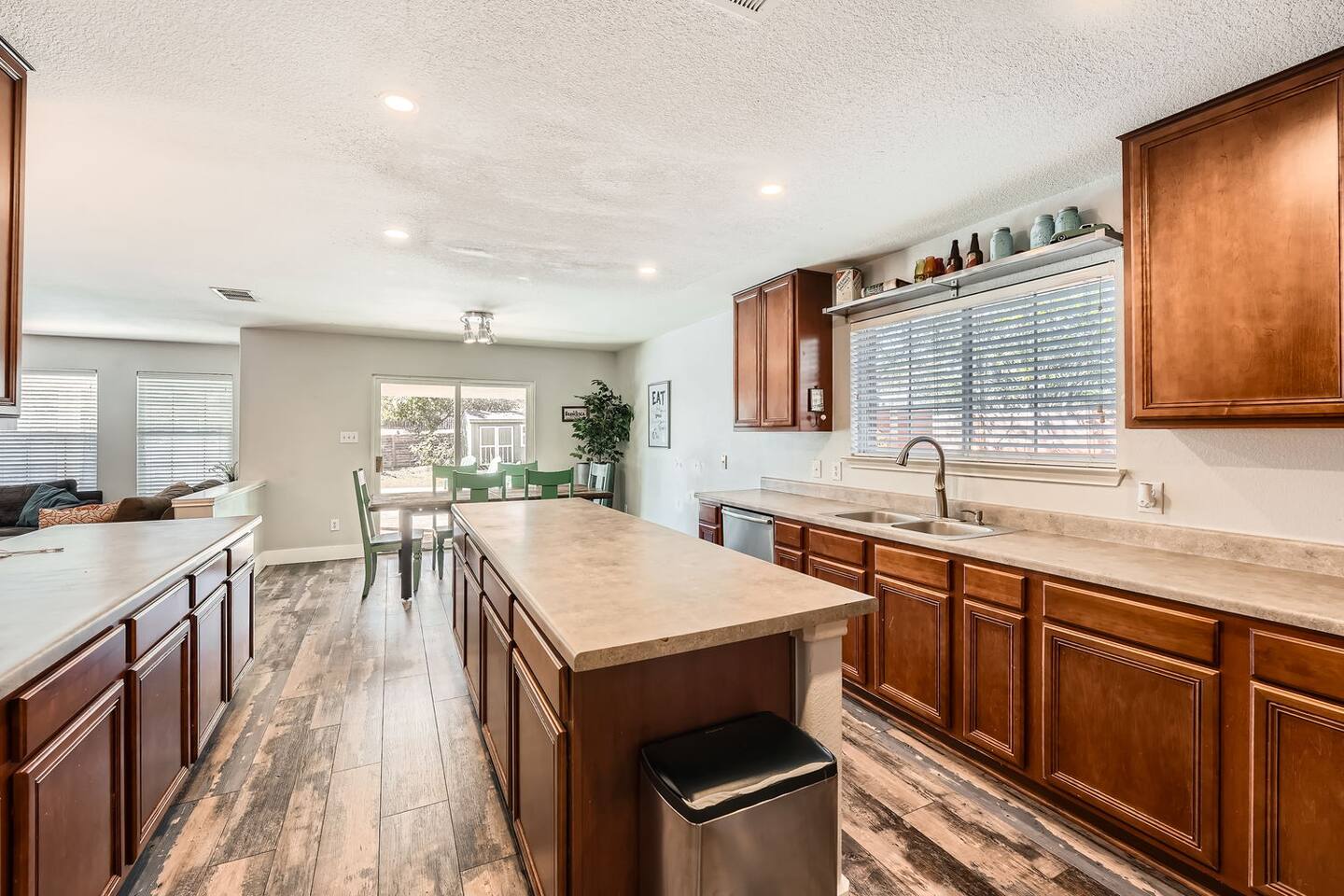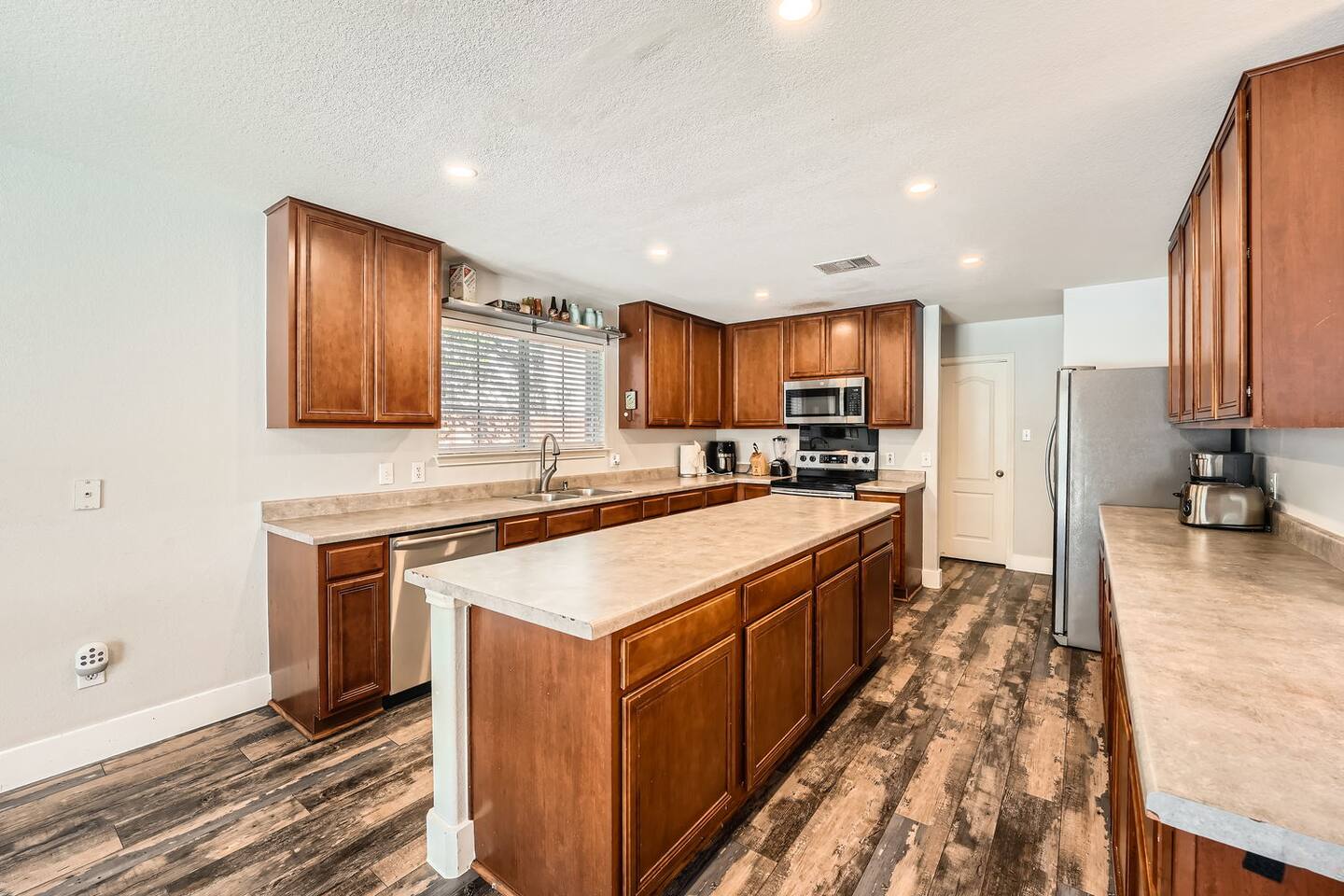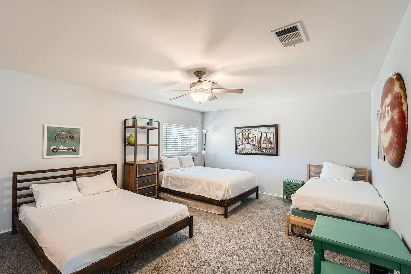 This house is a sprawling 5 bedroom house that goes on and on and on. Every square foot is tastefully decorated and set up for a comfortable stay for a group of 10 to 20+ and loaded to be the most fun house in Austin, Texas. Just take the shuffleboard table...not a puny 10 foot table...its 22 foot and handmade originally for Dave and Buster's. They said they paid $10,000 for the table when they sold it to me. We have an arcade that is an old Street Fighter game upgraded to have more than 3,000 games, a 4 player NBA Jam arcade, dual crusin car racing arcades, a Big Game Hunter arcade machine and an air hockey table in the converted game room. The pool and huge covered patio with 8 person LA Spa hot tub will be a hit. The kitchen is huge and fully loaded. The main TV is 65 inch curved 4k Samsung tv. I could go on and on! This is the house for you.